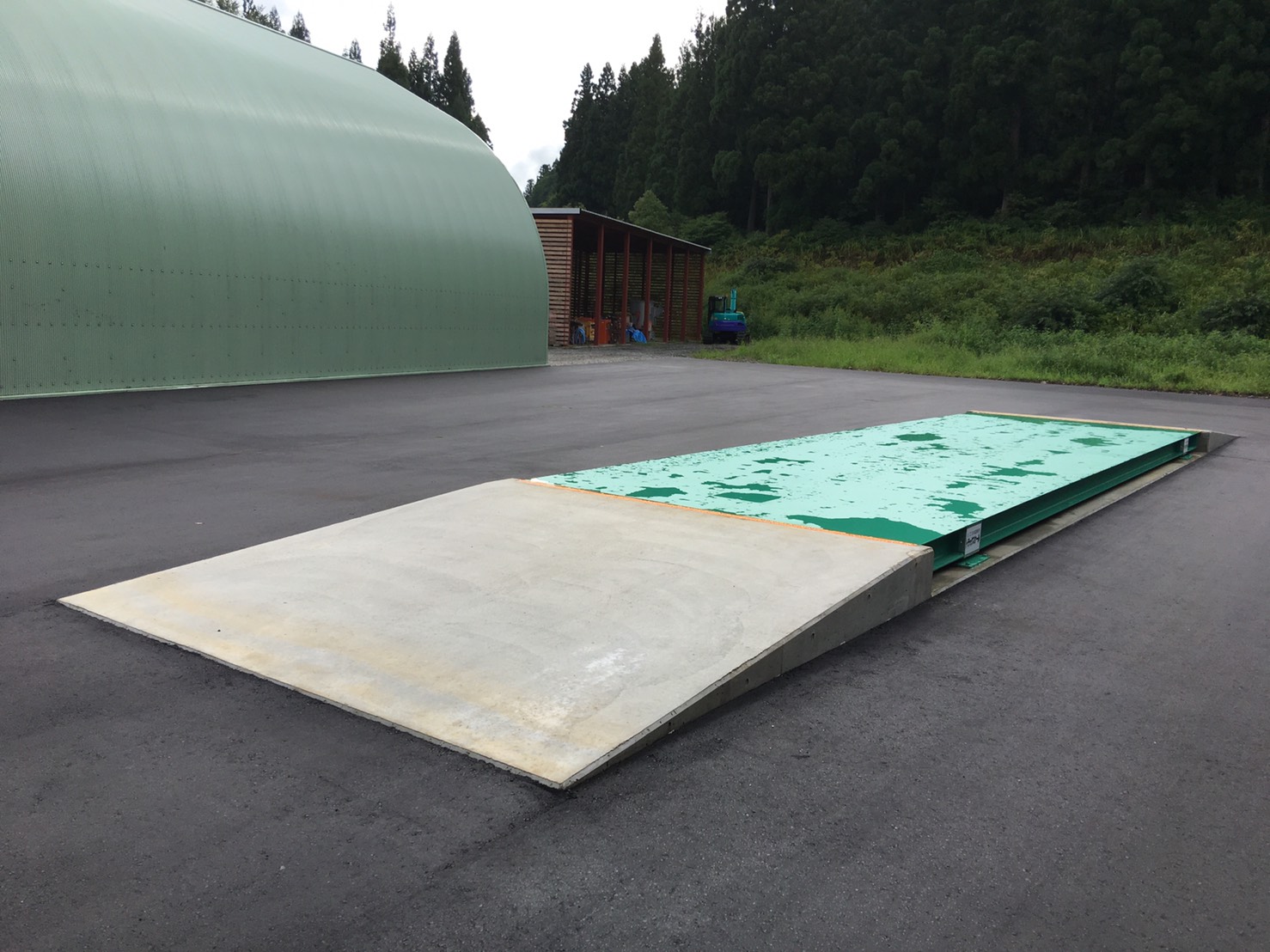 - 従来の埋込式トラックスケールに比べ浅い基礎施工で済みますので経済的です。積載面と地上面がフラットですので、スロープのスペースが必要ありません。